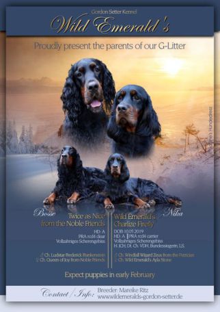 Nicht nur gesundheitlich, sondern auch optisch passen Nika und Bosse perfekt zusammen, zusätzlich ergänzen sich die Pedigrees der werdenden Eltern besonders gut über die englischen Vorfahren / Blutlinien und lassen uns auf eine weitere gesunde, typvolle, wesensfeste und ausgeglichene Gordon Setter Generation
