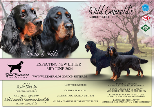 Mit diesem Wurf dürfen wir uns nicht "nur" auf einen weitern Wurf freuen, sondern auch auf eine "neue" Generation der Wild Emerald's Gordon Setter!