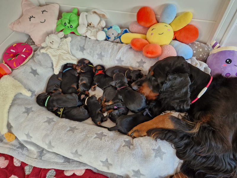 Der jungen Großfamilie geht es prima. Nelda geht in ihrer Mutterrolle völlig auf und kümmertsich hingebungsvoll um ihren Nachwuchs. Alle Minis haben zugenommen und auch Nelda hat weiterhin einen gesegneten Appetit und wird mit allem verwöhnt was sie möchte und braucht, denn nur so bekommt sie die kleinen Mäuler satt ;-)